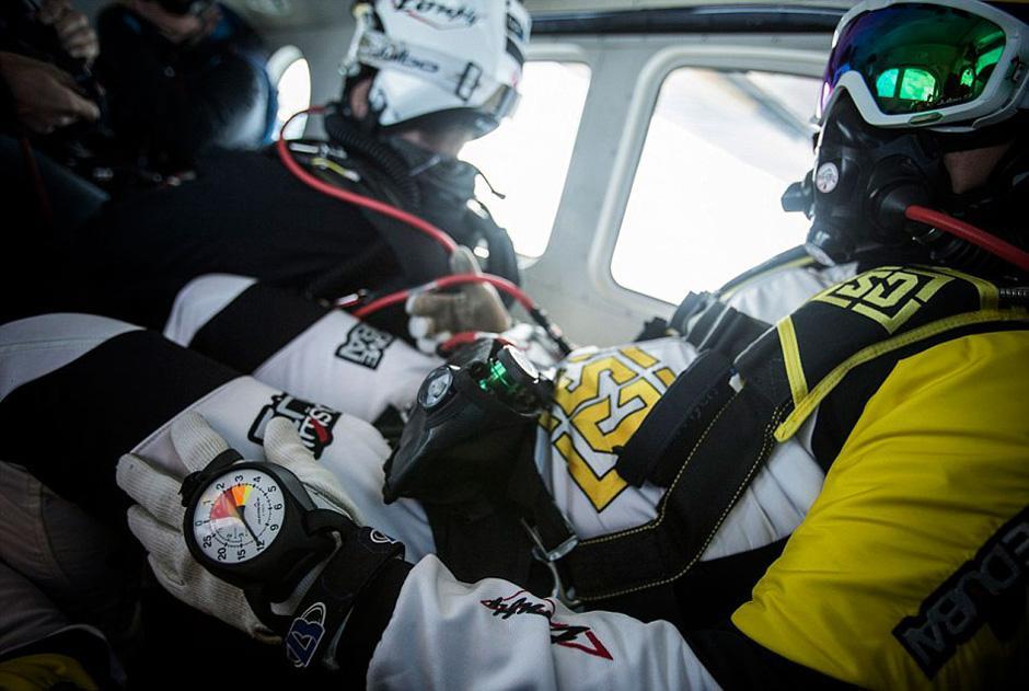 全套跳伞专业设备使用(安全配带、防护服、防风镜等)