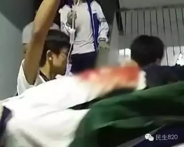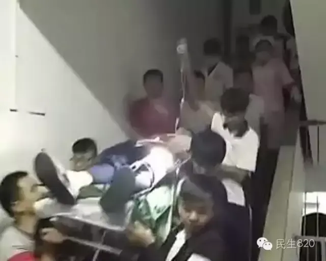 从一些观众发来的视频和照片中可以看到,昨晚,学校的宿舍楼梯上站满了人,有七八个人抬着担架下楼,担架上面躺着一名穿着校服的学生,手上还打着点滴,整个人一动不动,身穿的白色校服上,腹部位置已被鲜血染成了红色,随后,受伤的学生被送到了当地人民医院进行抢救。