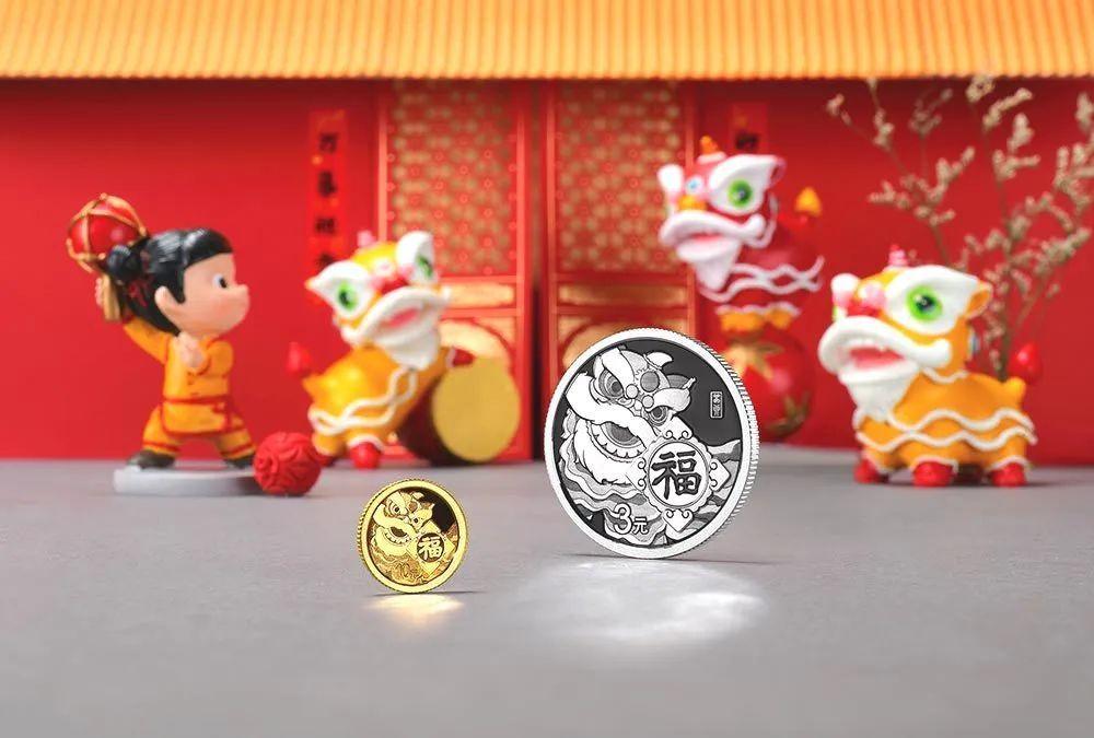 这套纪念币也有多种变化。其中银币大幅缩量,减少了50万枚。同时,它们的设计风格也发生了大变化。从地域特色场景,转变为舞狮图案。