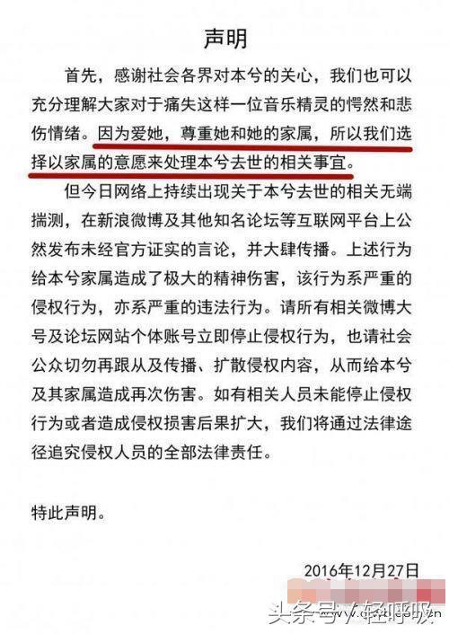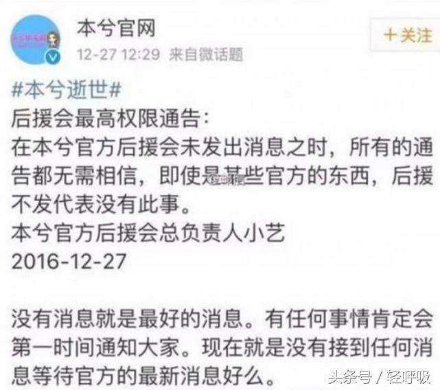 因故离世,还是另有隐情?24号还说,25号会和大家见面,又说24号就离开人世?后援会在27号发出这样的声明,人们都慌了,乱成一锅粥。