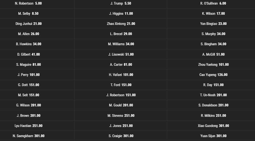 随着赛程的逐渐深入,来自世界各地的顶尖选手也都脱颖而出,斯诺克世锦赛官方也同步更新了夺冠热门选手的榜单。在这份榜单的前十名中,中国选手独占3席,其中丁俊晖作为我国的最强战力,仅排在第7名,单从榜单上来看,丁俊晖并不是本届斯诺克世锦赛的夺冠热门。一方面是因为丁俊晖最近比赛状态起伏比较大,另一方面则是因为,排在丁俊晖身前的6名选手个个都是难啃的硬骨头,实力也都不容小觑。
