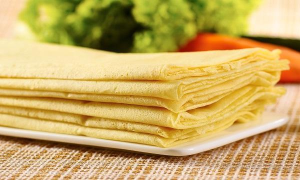广灵县豆腐皮,把上好的黄豆磨成浆然后加入比例清水做成豆汁,由大火把豆汁煮佛后.然后小火等待豆汁表面凝结成皮状物。