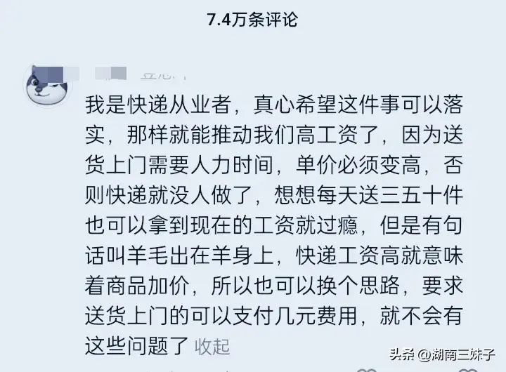 有网友说:“早该整顿了,一直不理解现在快递为啥不送,都让去自己取,谁定的规矩。”