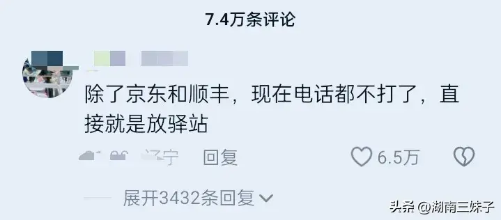 有网友说:“除了京东和顺丰,现在电话都不打了,直接放驿站!”