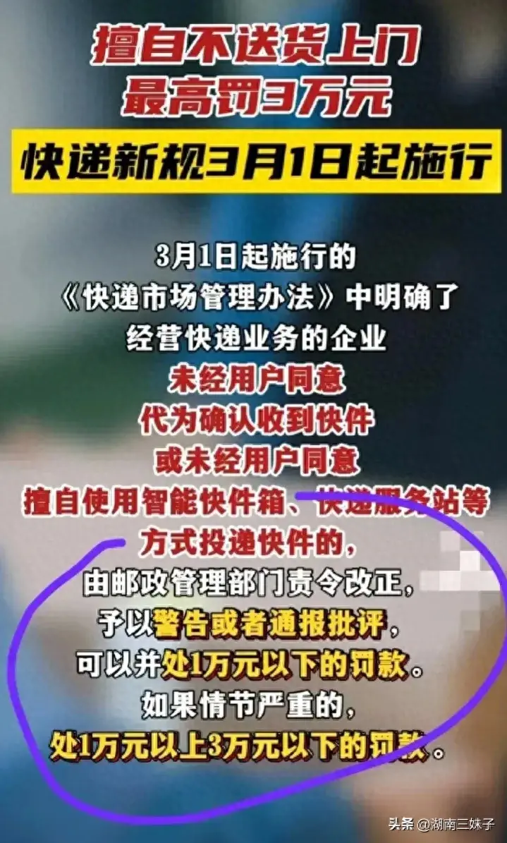 好消息!国家终于出手了,从2024年3月1日起执行快递新规,明确要送货上门!