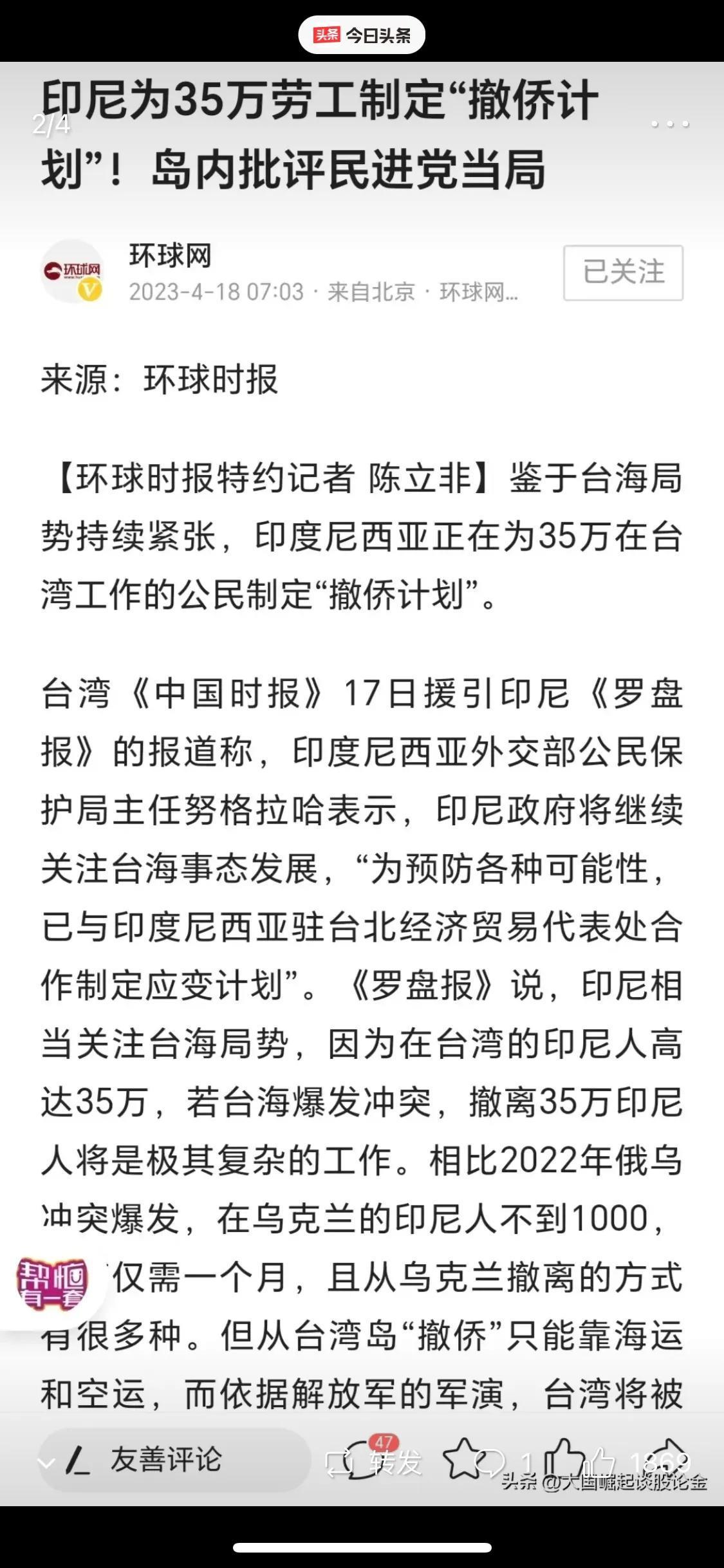 二,印尼紧急实施在台35万工作人员“撤侨计划”,日本、缅甸、菲律宾等国纷纷随后跟进。