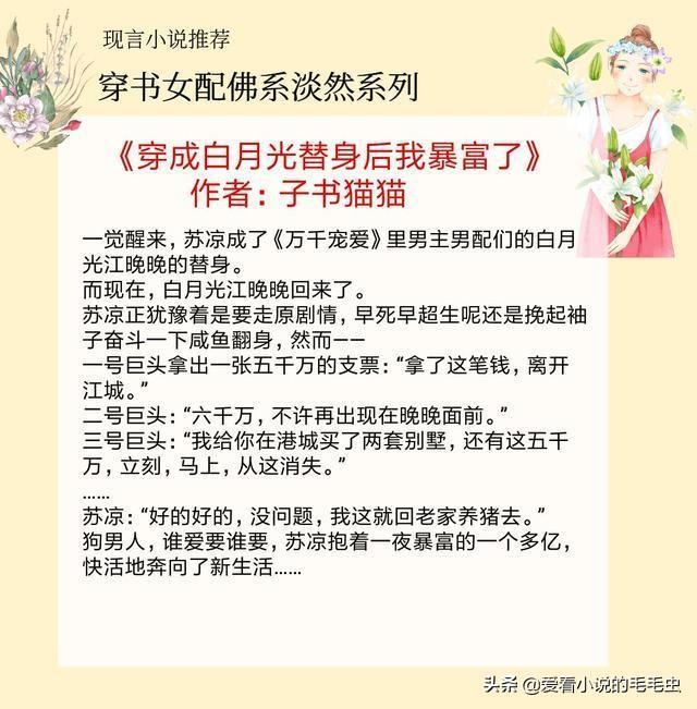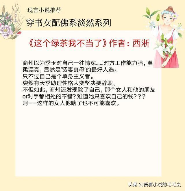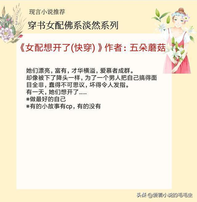 大家好,我是涵涵,今天给大家推荐5本穿书女配佛系淡然的小说,她不作不抢远离剧情,男主却捧着宠!
