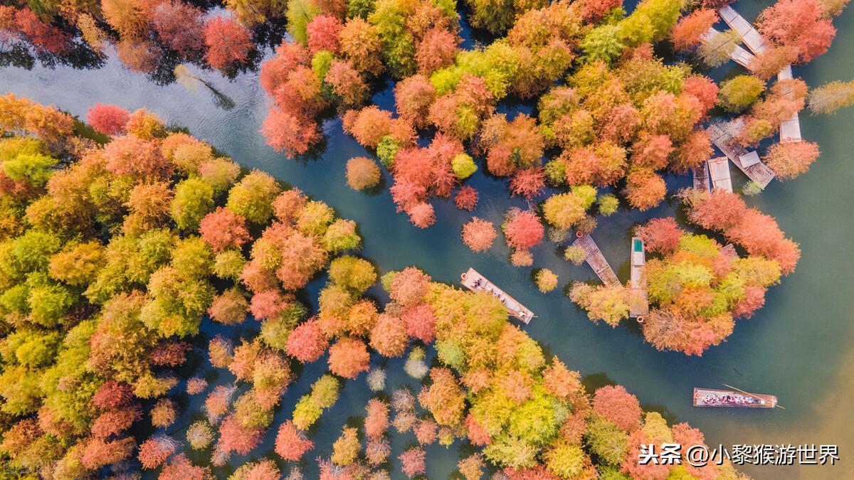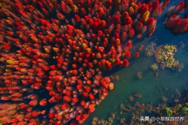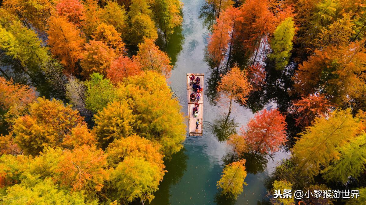 落羽杉湿地公园不大,个把小时就能逛完,若是时间充裕的话不妨乘坐小船游走在红杉里。这里的落羽杉大多都是种植在清澈见底的水里,水不深也不浅刚好适合小船行走,乘坐小船穿梭在红林、绿水里别提有多惬意。(落羽杉湿地公园目前是免费对外开放的)