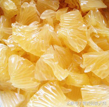 不知道现在有没有痰多咳嗽的人群,不防做一个柚皮川贝膏,可以化痰止咳。将一个柚皮(柚皮要清洁光洁,质地密致,气味芬芳浓郁,破损发酵的柚皮不能食用)洗净后剥去内层的白瓤,将皮切碎,之后加川贝母10克,并倒入适量蜂蜜入锅蒸烂,然后再密闭储存。每天早晚服用。对于老年性咳嗽和气喘,以及经常出现口干、手足心热的阴虚体质的都有很好的作用。