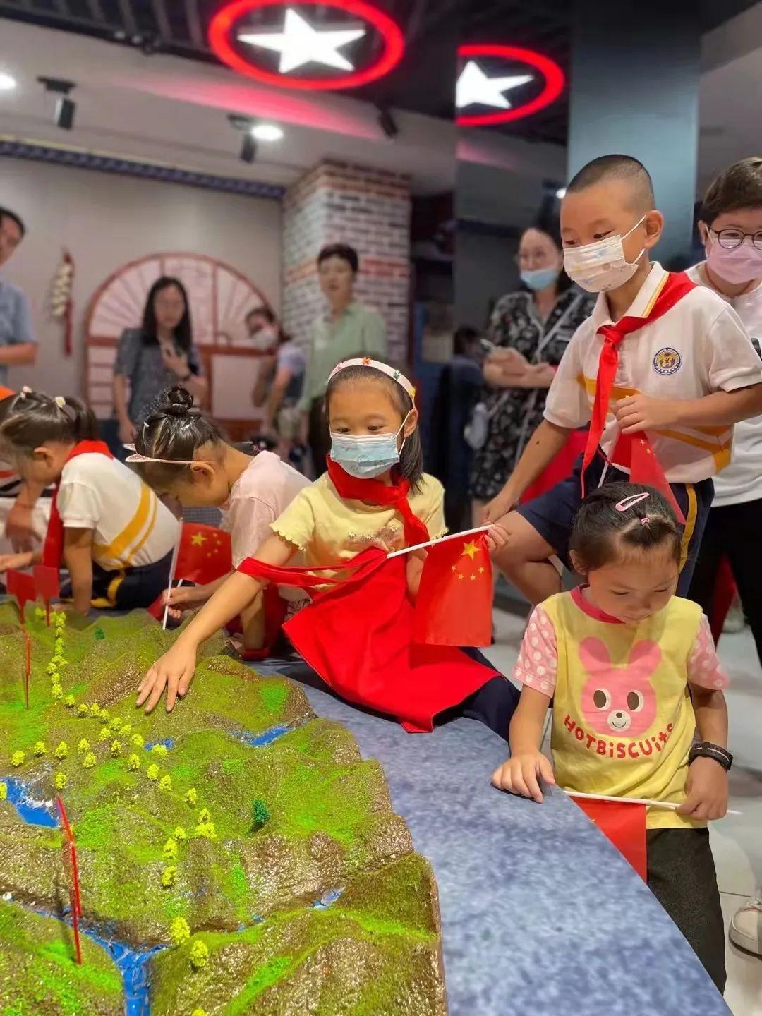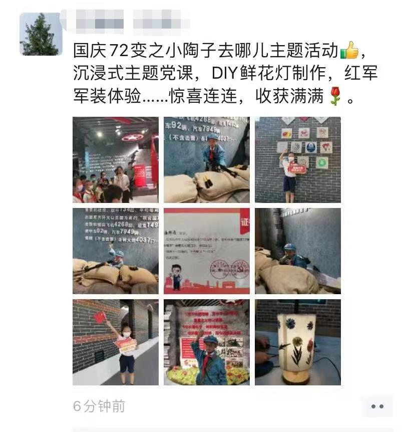 国庆期间,宝山区教育工作党委联合区党建服务中心开展“小陶子”去哪儿系列活动,以党团队携手谋划,党建架桥整合,使各级党群阵地成为“双减”后的第二课堂,通过庄严的升旗仪式、新颖的沉浸式情景党课、体验式的纪念封微课程、携手参与的亲子互动,让孩子们在红色之旅的实践中增长知识,在互动体验中走进党史学习教育。