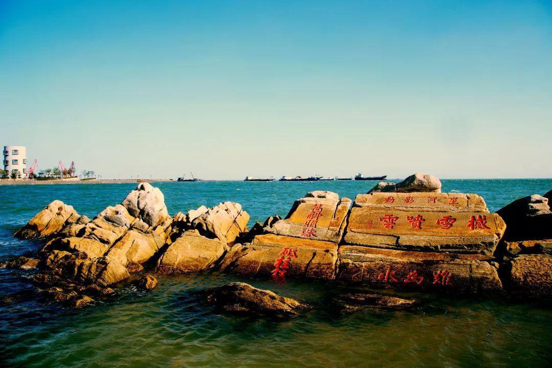 这里,有一块巨大的摩崖石刻礁石,上有明清时代苏京等人题书“星河影动”“撼雪喷云”“万斛明珠”“砥柱狂澜”“难为水”,如行文流水苍劲有力,被誉为“万里海疆第一碑”。370余年,久经海水洗礼和历史沉淀,是中国唯一被三位古人同时刻字的石碑。