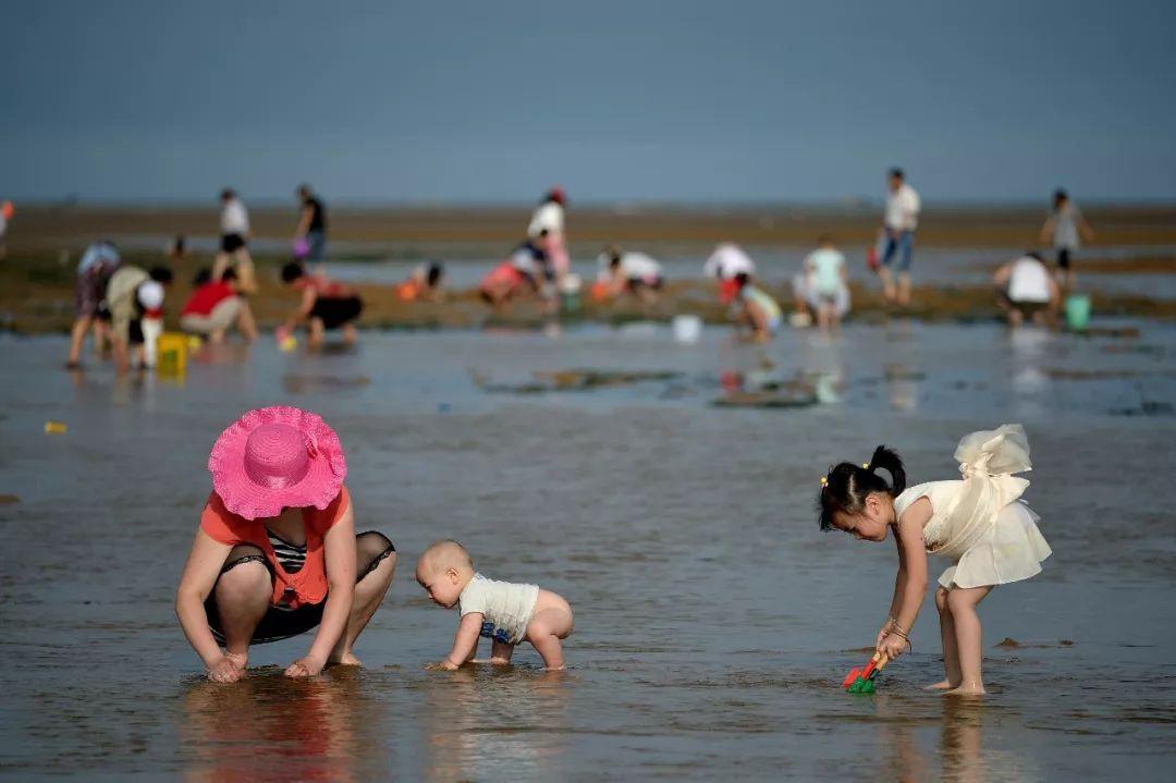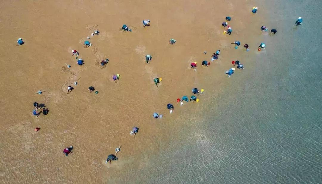 ▶ 这里拥有国内首屈一指的优质赶海资源,每当潮水退去,当地人都会成群结伴的来到一望无垠的沙滩之上,提着小桶小铲,用勤劳的双手收获丰硕的果实!