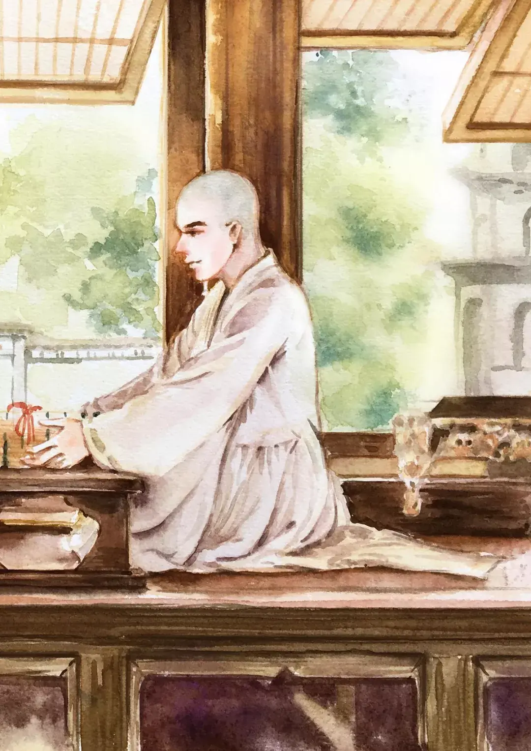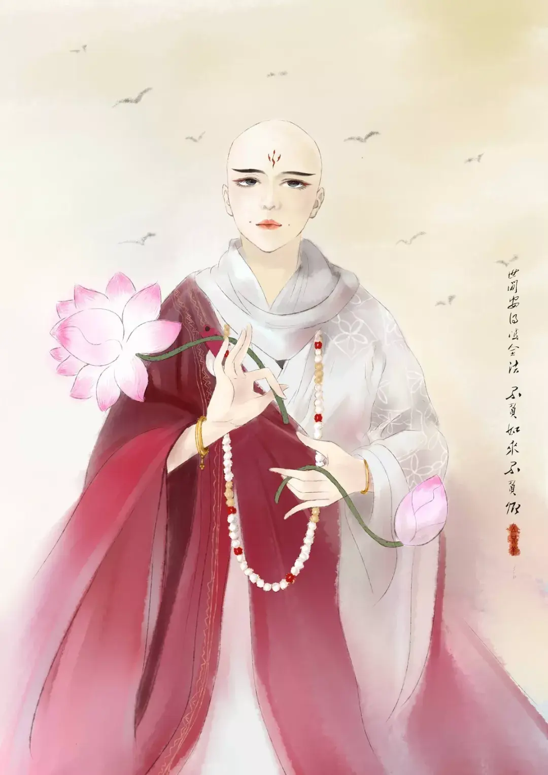 古风壁纸+头像插画「和尚」一缕情丝,几点离愁,又有多少俗事缠