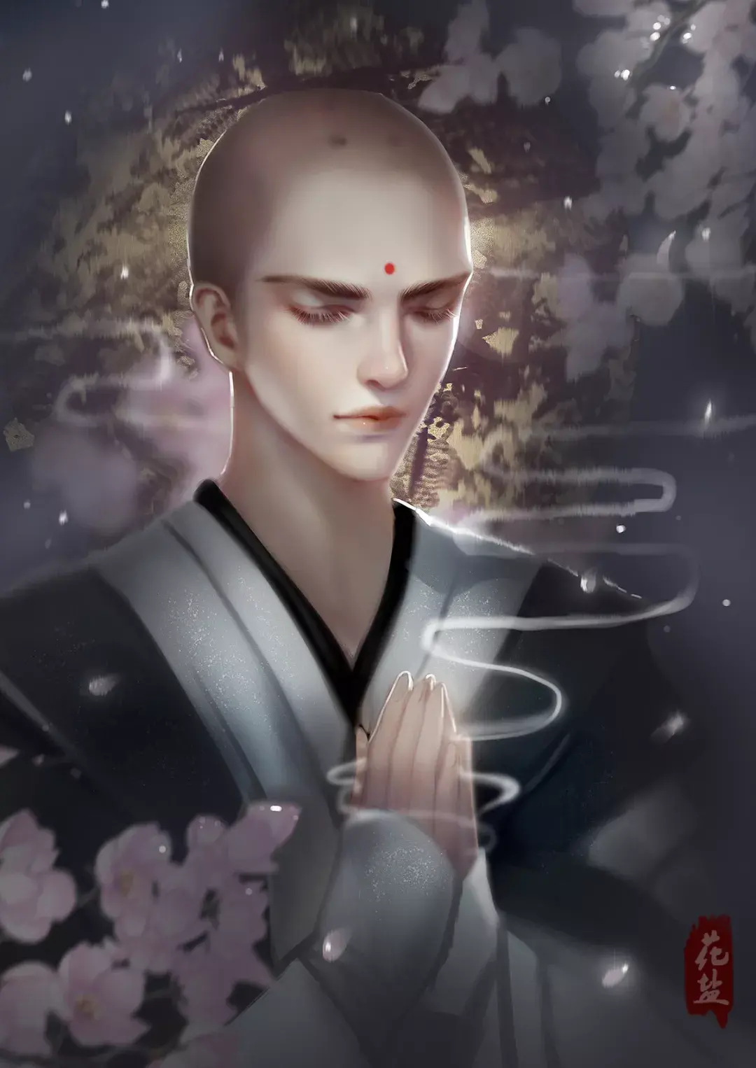 古风壁纸、头像插画「和尚」一缕情丝,几点离愁,又有多少俗事缠
