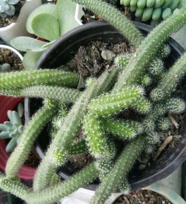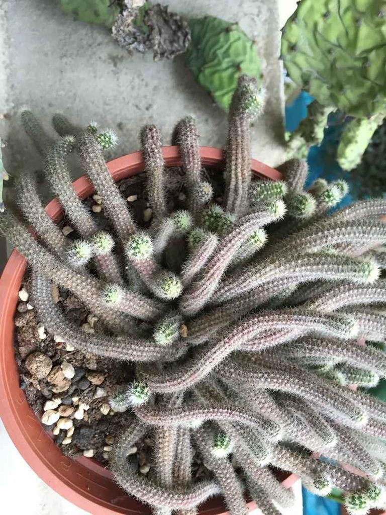 那如果很喜欢养一些小盆栽在家里面,装饰阳台或是窗台露台,但是没有很多时间去管理养护盆栽绿植,我们也可以考虑养一些懒人植物,比如说有仙人球,仙人掌,多肉植物,还有一种植物,仙人掌科的,叫作白檀仙人掌,枝条像手指一样粗,毛茸茸的,也有花友叫它毛毛虫。