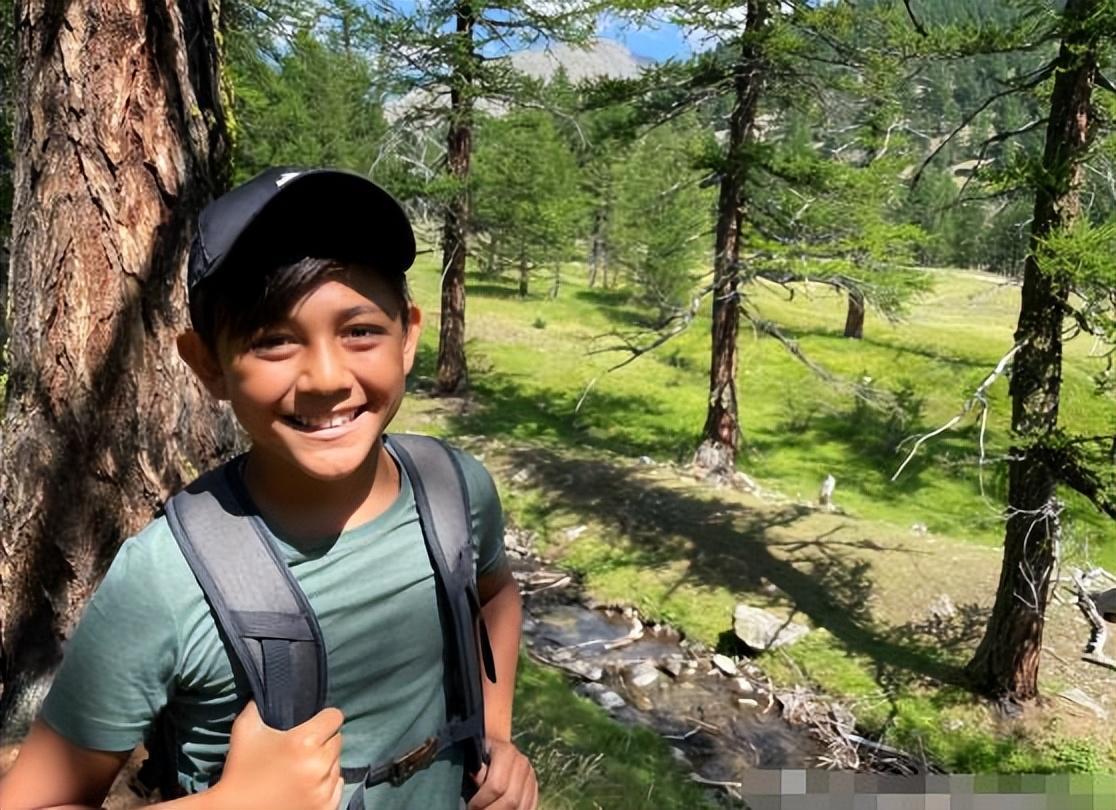 明显看到诺一的脸跟裸露在外的胳膊被阳光晒得很黑,微笑面对镜头时一口大白牙格外抢镜,运动上衣下明显看出肉墩、壮实的身躯,像是壮汉爸爸的缩小版,看上去格外引人注目。不怪妈妈安娜喊诺一“小伙子”,这壮实的身材怎么看都不像其他瘦成细竹竿的12岁小男生。