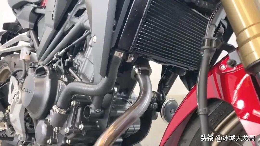 在灯光方面,本田CB250R采用了本田复古系列标志性的圆灯造型,并使用LED光源。灯箱和支架都经过涂黑处理,给人一种无所畏惧的感觉。动力方面,这款车型搭载了水冷四冲程四气门单缸电喷发动机,实际排量为250CC。它匹配了6挡变速和链条传动,并加入了滑动离合器。最大功率达到27匹,最大扭矩为23牛米。