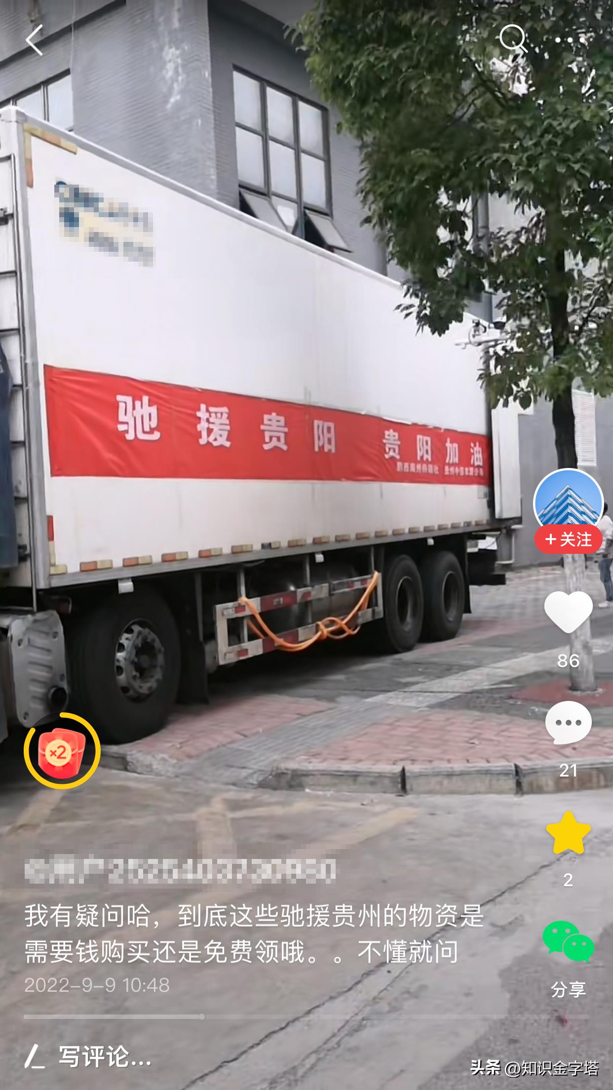 近日,有贵阳网友拍到打着“驰援贵阳,贵阳加油”标语的运输车停在超市门口。网友纳闷不解道:“到底这些驰援贵州贵阳的物资是免费的还是要钱的,因为直接对接的对象是超市”。