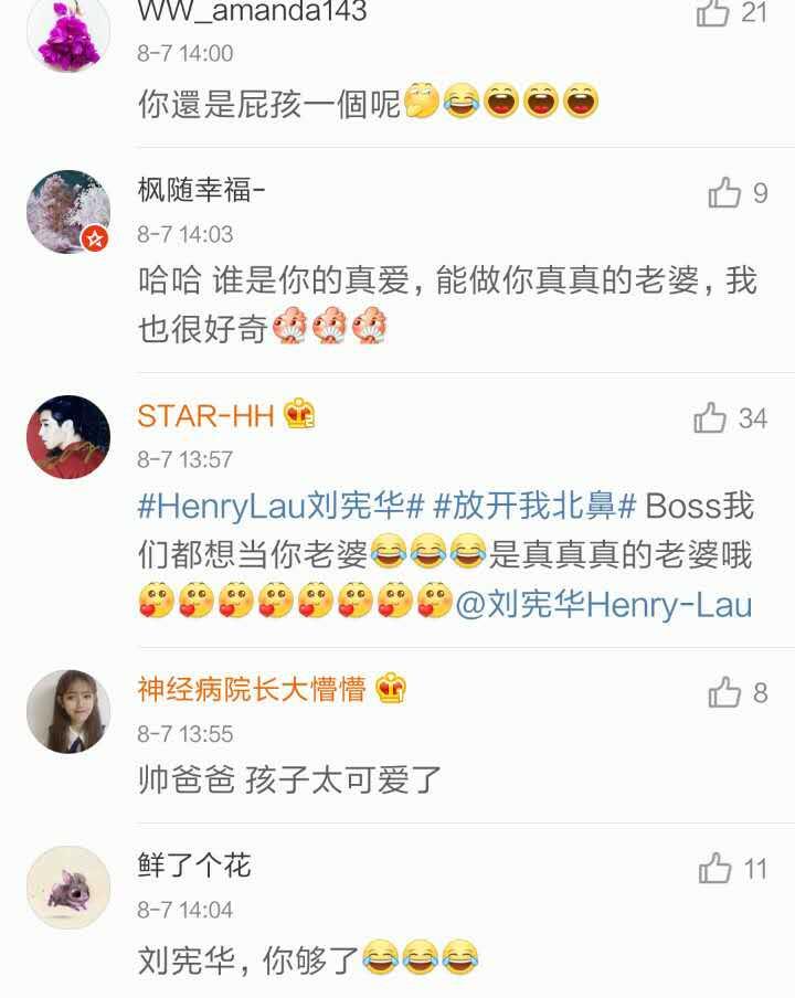 今天,Henry在微博晒了一组图并配文:真的太可爱了!其实我也和想要北鼻了。我可以做个好爸爸吧!?谁能做到我的真真的老婆呢?