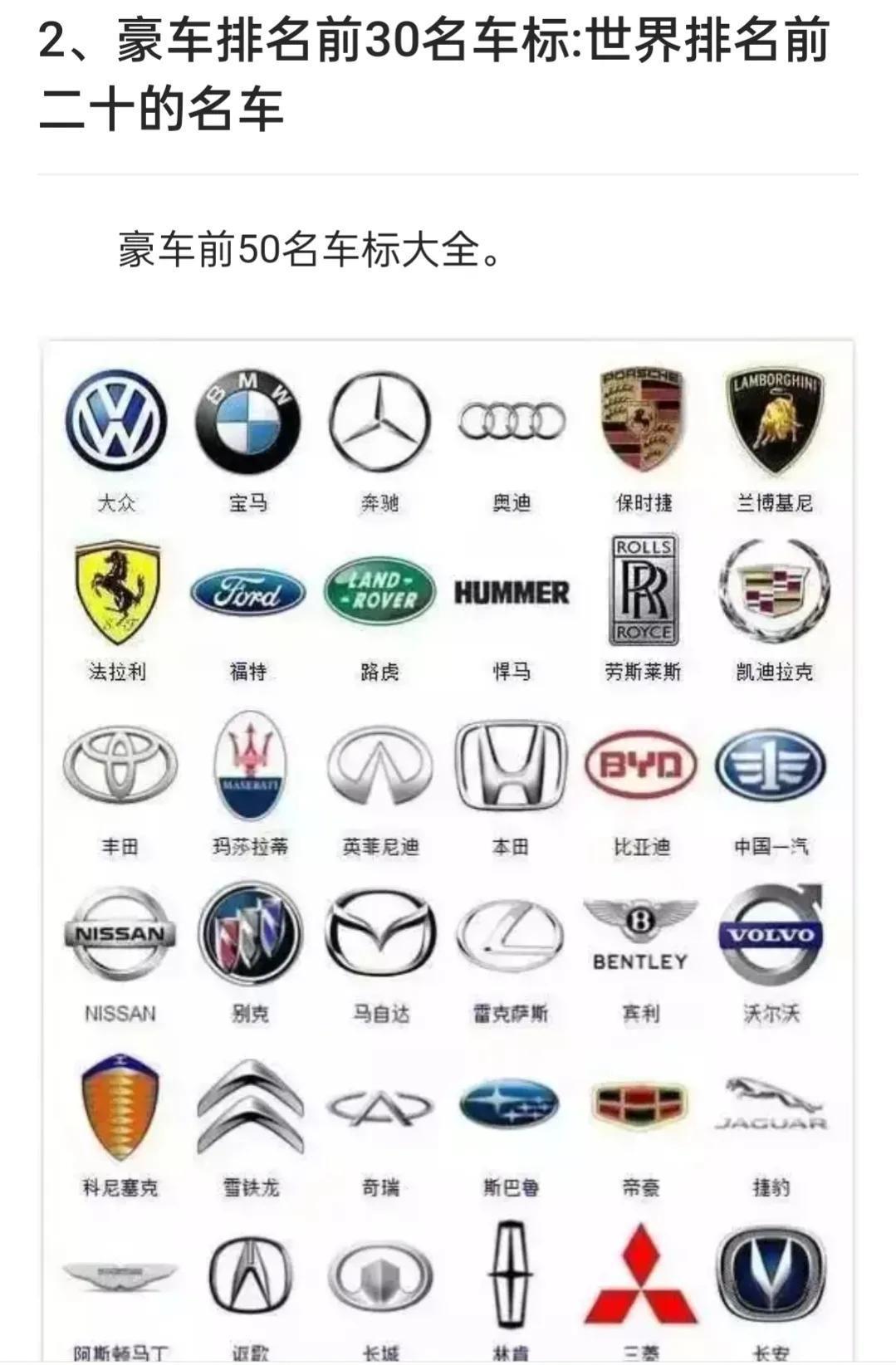 豪车排名前30名车标,豪车排名前30名标志是什么?