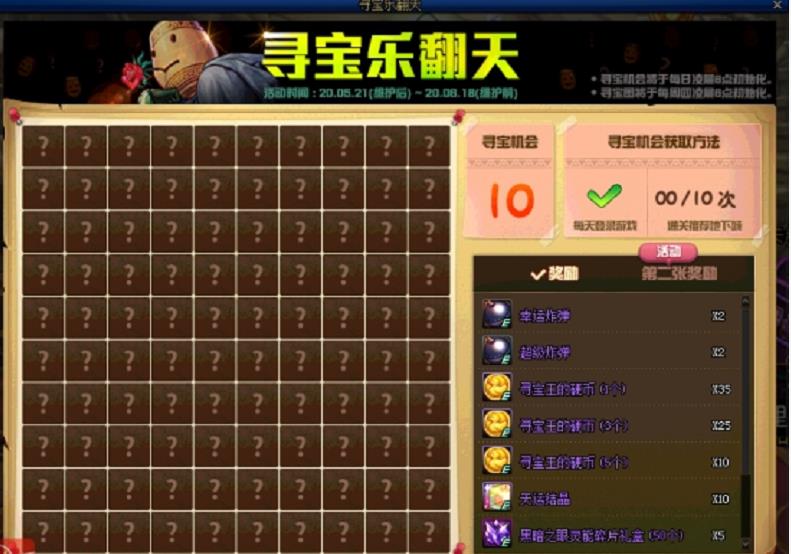 而这次刮刮乐活动改名了,换了个叫寻宝乐翻天的新活动来跟大家见面了,不过虽然换了名字,但是这个活动的玩法却是一点也没变,玩家们需要通过点击寻宝图中的格子来点亮奖励,直到所有的奖励格子都被点亮之后,就能拿到全部的奖励了,这次的奖励还是比较丰富的,有装备有附魔,还有换装和仓库升级券,都是给小号用的东西