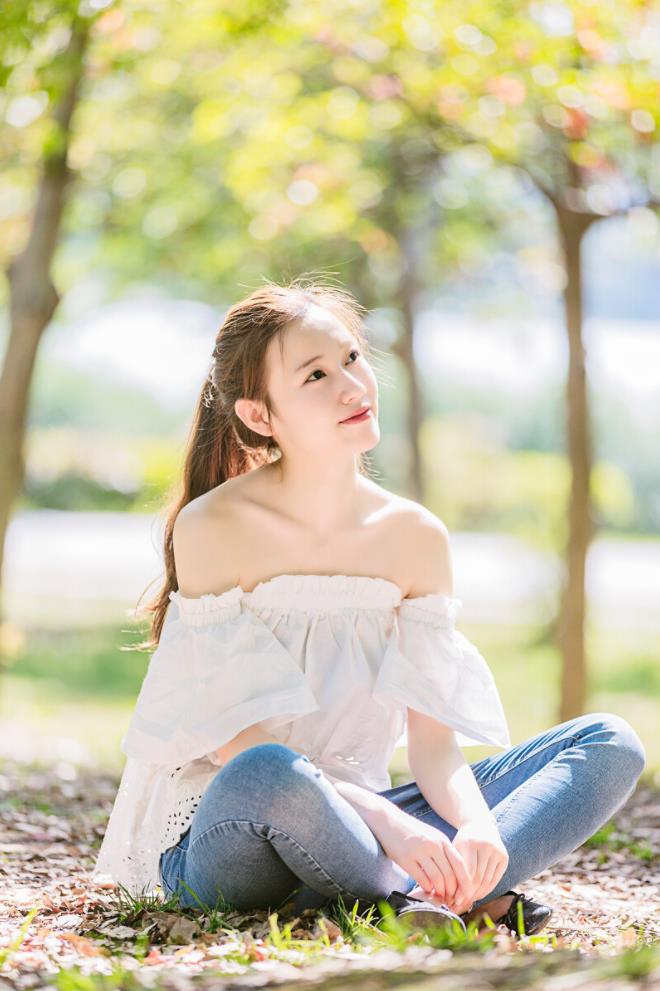 女生户外拍照,可以让自己找一处干净的地方,让自己自然盘腿坐下来,然后眼神看着远方,假装不经意间被拍,也能拍得美美的。