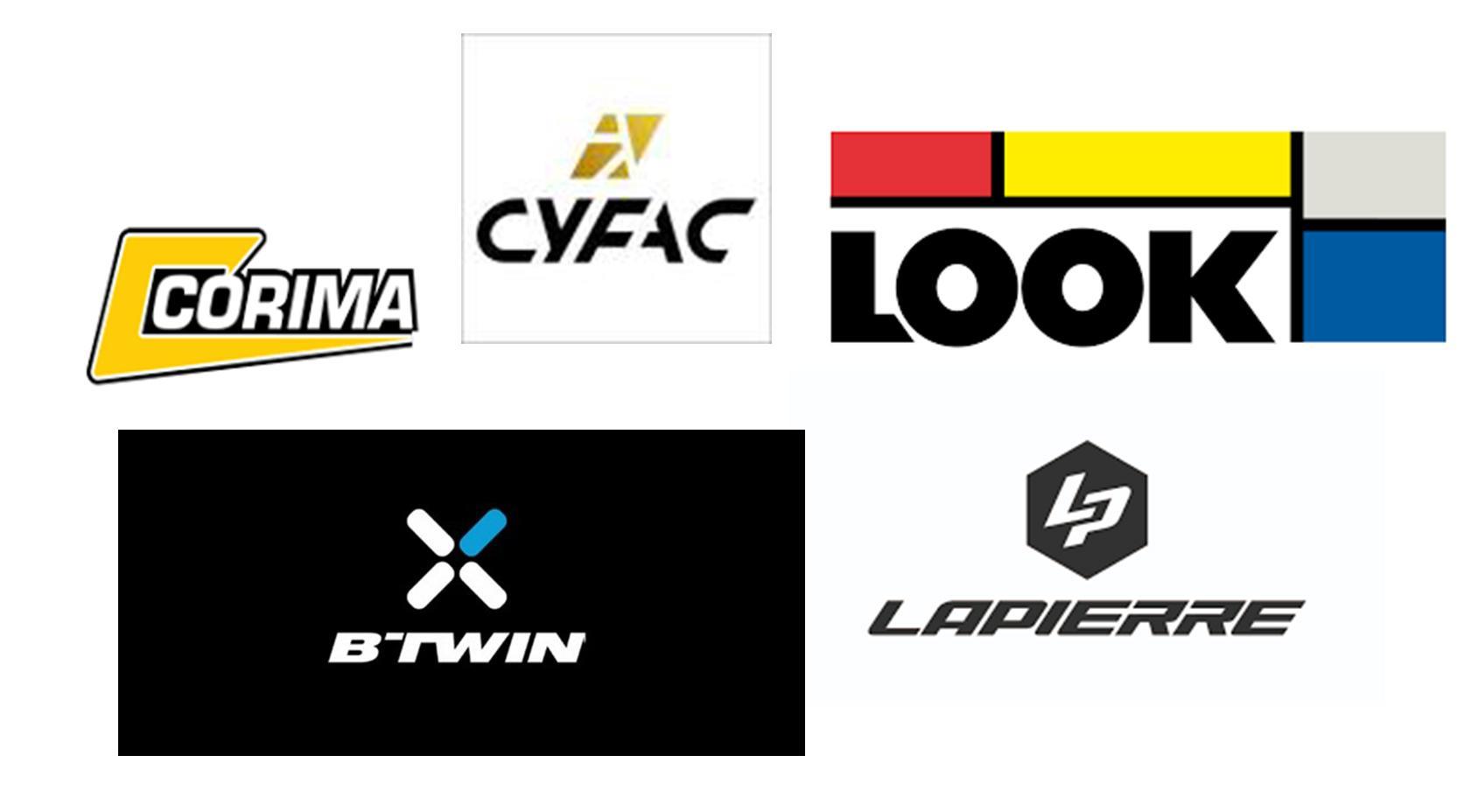 科里马(corima)、赛福克(cyfac)、拉皮埃尔(Lapierre)、洛克(Look)迪卡侬(btwin)。