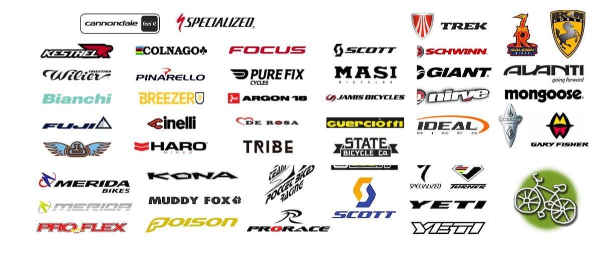 佳能戴尔(cannondale)、费尔特(felt)、富士自行车(fuji)、宜必思(Ibis)、马林自行车(marin)、马西自行车(masi)、moots cycle、崔克(Trek)、闪电(Specialized)、野帝(yeti)。