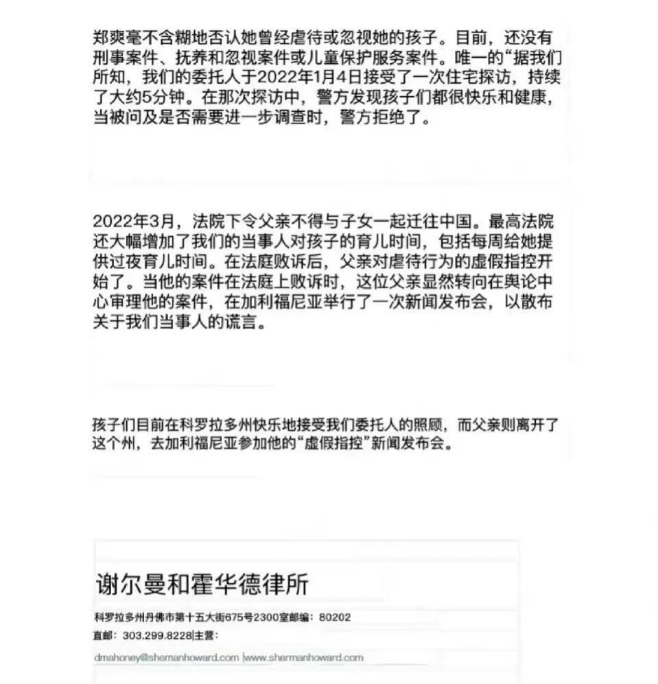郑成华发布严正声明书,回应张恒关于伤害自己孩子的不实指控!郑爸说郑爽绝对没有伤害小孩,反而跟孩子很快乐相处。而昨夜,郑成华更连发三条微博怒斥张恒谎话连篇,爽子ins也更新律师函,指责张某前往加州参加“虚假指控”新闻发布会。