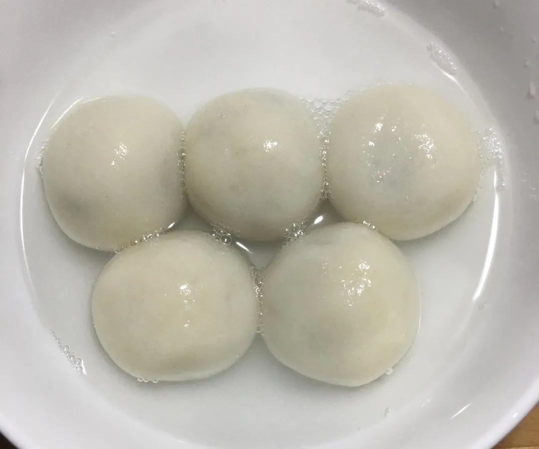 用虎口轻轻向上收拢,捏紧封口。再次滚圆,就形成了一个白胖子汤圆。全部做好。