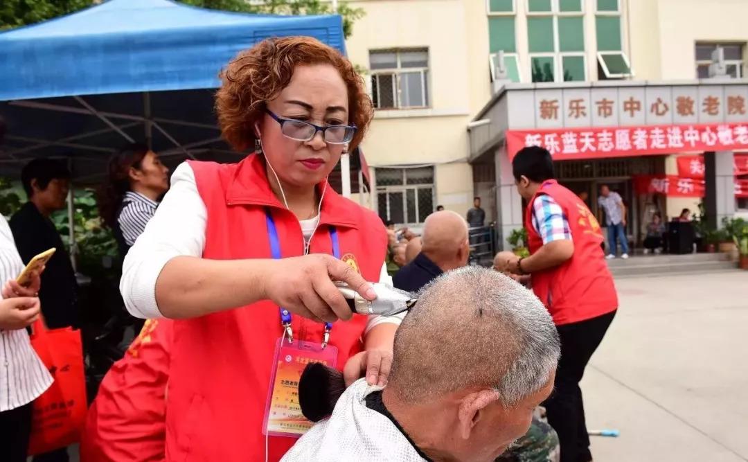 志愿者们为老人理发