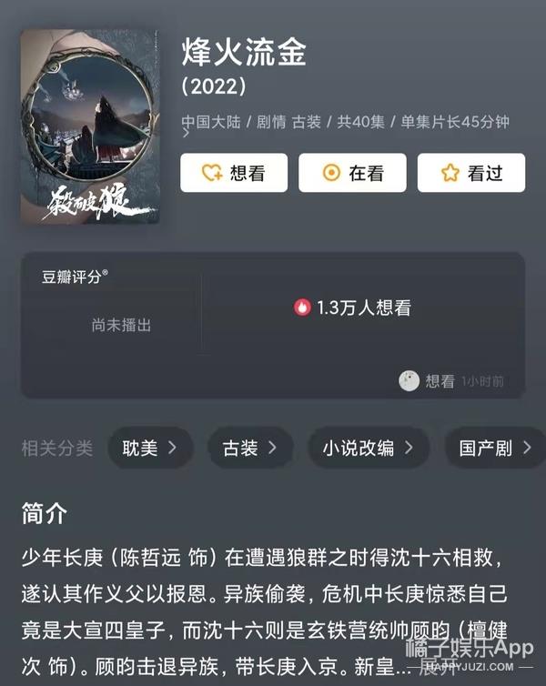 目前宋继扬的待播剧只有一部耽改剧《杀破狼》,现改名为《烽火流金》。