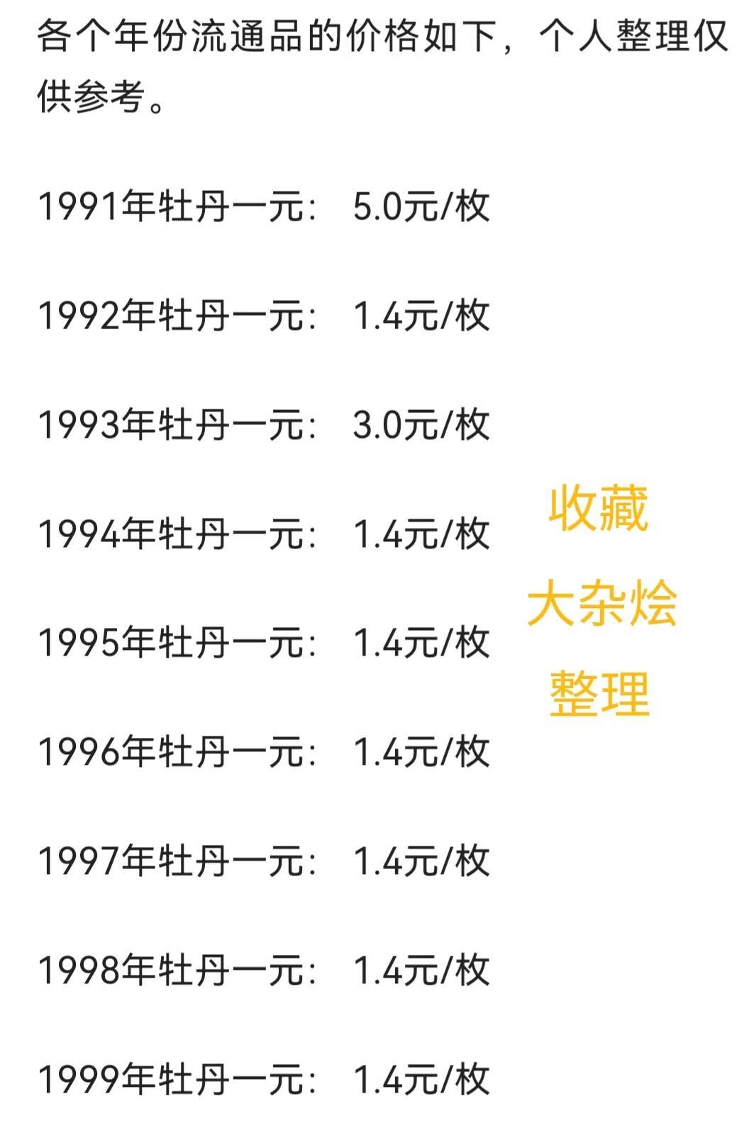 如果你幸运的收到了这种牡丹一元,先别着急花掉,不妨来对照一下价格,也许还有意外惊喜!