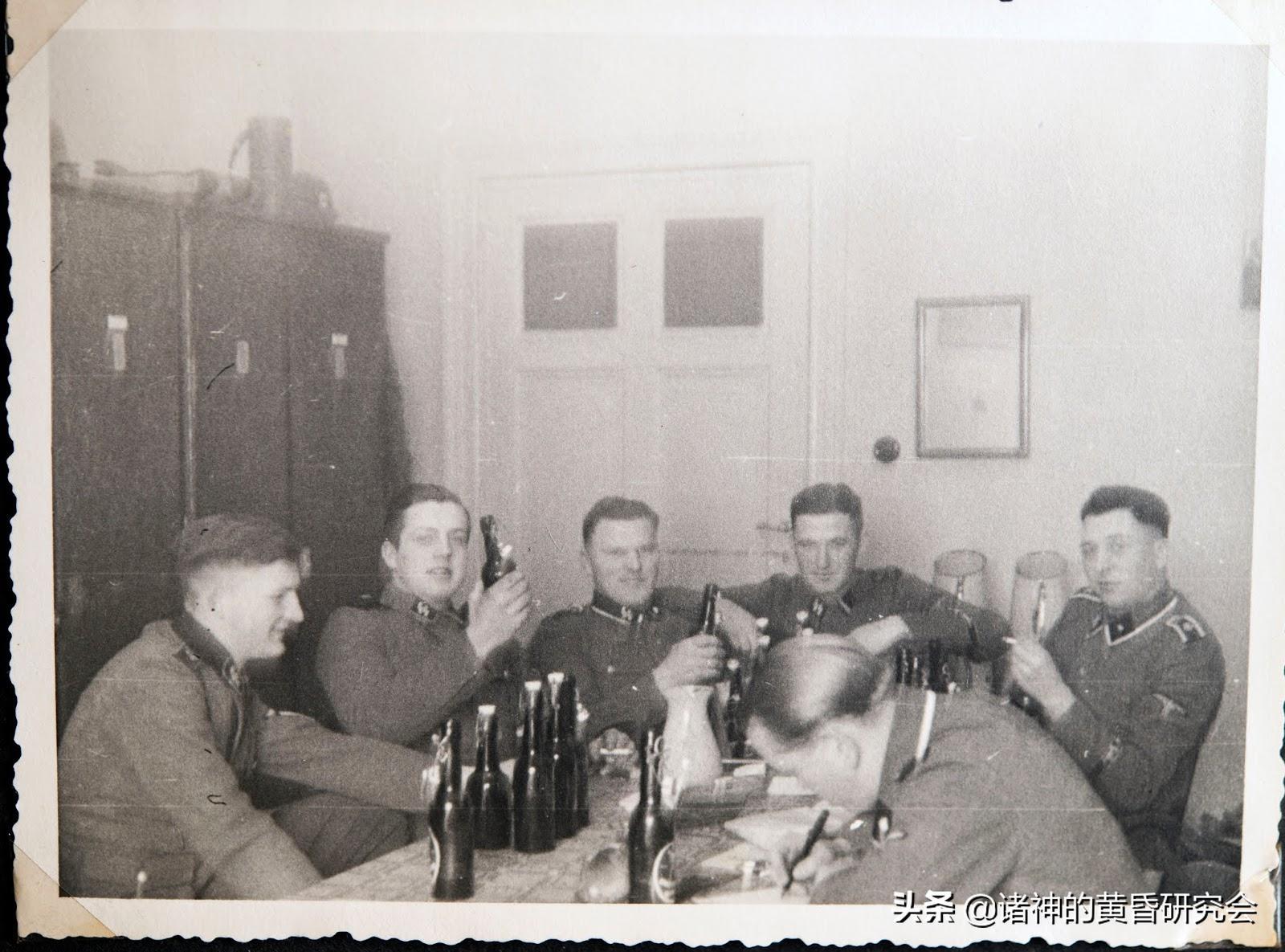 5个队员在勤务之余,正在享受德国人的传统节目-喝啤酒