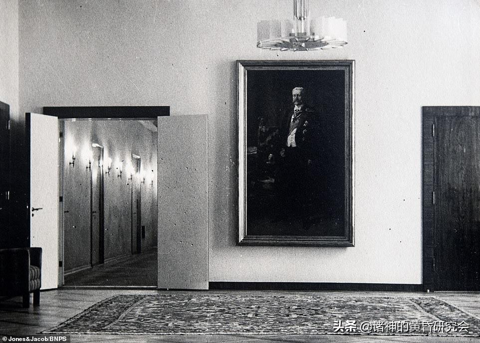 在柏林总理府内的希特勒办公室,可见墙上的兴登堡画像