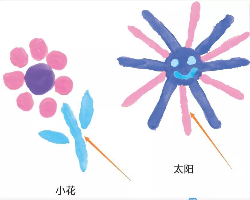 手指头蘸色在纸上拖动,画出的是粗线条,适合手指涂鸦,和手指画大形体形象创作;