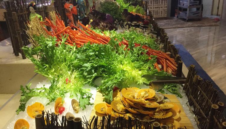 午餐、晚餐提供:中餐、西餐、日式料理、现场烤鸭、烤羊腿、铁板烧、生猛海鲜、中西冷盘、精美西点、传统小吃。