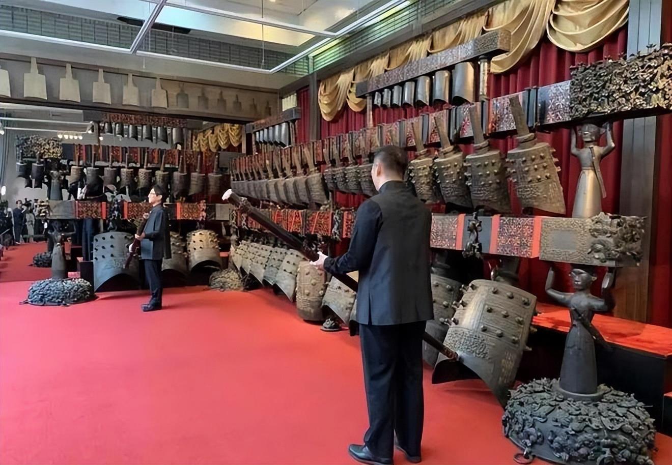 战国曾侯乙编钟的出土改写了世界音乐史,是中国迄今发现数量最多、保存最好、音律最全、气势最宏伟的一套编钟,代表了中国先秦礼乐文明与青铜器铸造技术的最高成就,在考古学、历史学、音乐学、科技史学等多个领域产生了巨大的影响,2002年1月被国家文物局列入《首批禁止出国(境)展览文物目录》。
