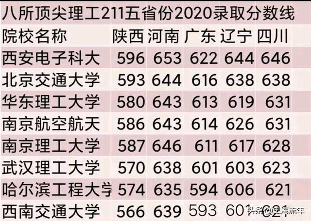 (1)西安电子科技大学(陕西省,211、双一流高校),最高河南省,653分;最低陕西省,596分。录取分数线最大相差57分。