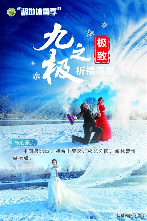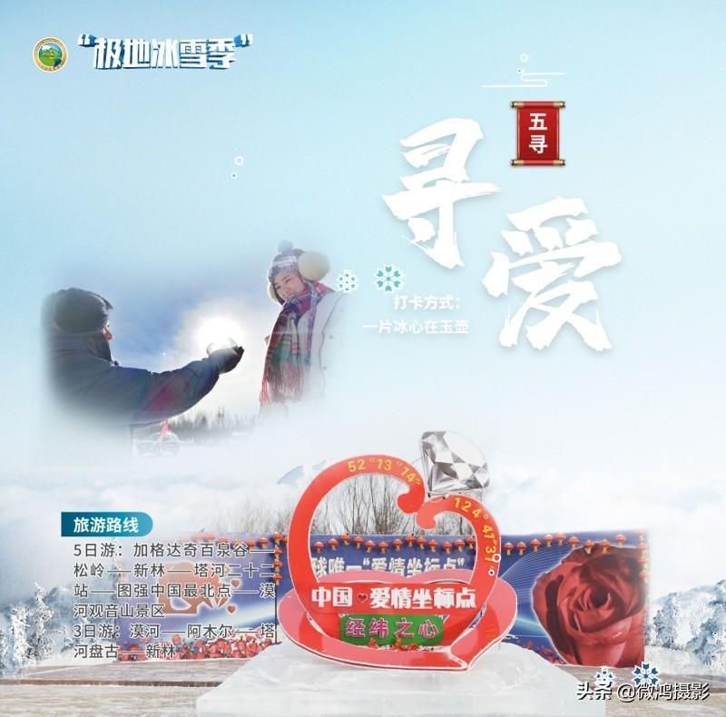 打卡方式:世界唯一爱情坐标点留影、冰雪婚纱,森林冰雪婚拍、冰心极地求爱。