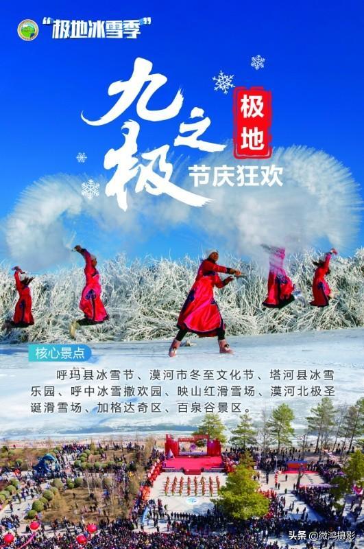 核心景点:呼玛县冰雪节、漠河市冬至文化节、塔河县冰雪乐园、呼中冰雪撒欢园、映山红滑雪场、漠河北极圣诞滑雪场、加格达奇区、百泉谷景区。