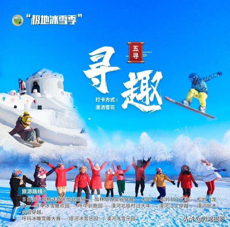 (1)5日游:加格达奇区加北民俗——加林局百泉谷穿越——松岭——松岭303工段——松岭飞龙山——呼中冰雪撒欢园——呼中驯鹿园——漠河北极村过大年——漠河江上穿越——漠河阿木尔河穿越。