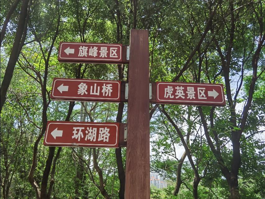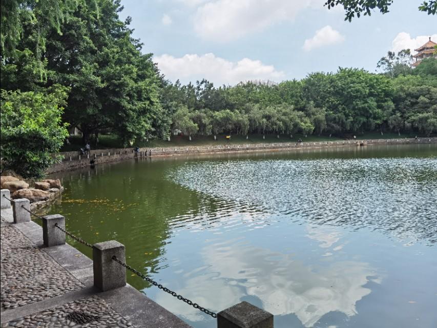 到虎英公园数次不少了,但似乎每次来都是直奔烧烤区,其余什么虎英阁、雕塑区一概视而不见。难得有这么一次机会悠闲地走在树阴包围的小道上,低视疏影斑驳的虎英湖,时有小船划过,留下淡淡的水痕;抬头,湖上的云雨桥尽头便是大名鼎鼎的虎英阁,再往上,便是绵绵不绝的黄旗山脉了。
