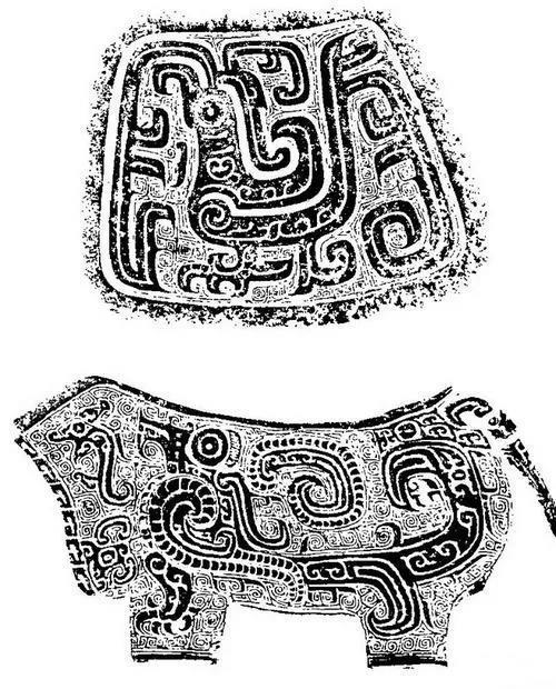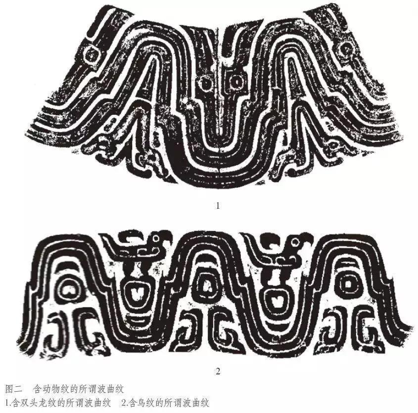 兽体变形纹多是动物纹的简化变形,主体不具备某一动物的整体形状只是象征性的兽体个别部位的变形,这类纹饰有:波带纹、鳞纹、蕉叶纹、窃曲纹等。