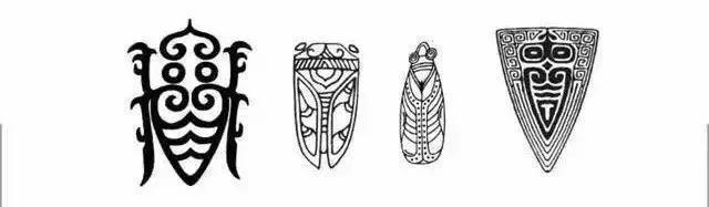 蝉体大多为垂叶形三角状,分为无足蝉纹、两足蝉纹、四足蝉纹和变形蝉纹四种类别。蝉纹中有的无足,似蛹,有象征死而复生之意,因而古人常以蝉为形作玉琀,置于死者口中,象征幻化,反映了古人的一种生死观。