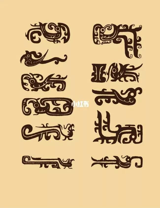 鹿纹:一般构成多两鹿相对,回首,作跪伏状。有的有角,也有的无角。常常装饰在卣、簋的口部或底部,通常流行于西周前期。在春秋晚期和战国时期青铜器上,也见有少量鹿纹。在石刻、铜器和漆器上,也常见到各种鹿纹。鹿是古代汉族人心目中的一种瑞兽,有祥瑞之兆。人们赋予了它美的化身和神的威力,希望能像鹿一样自由自在。鹿与“禄”音,意福禄吉祥,体现了人们对美好生活的追求和向往。