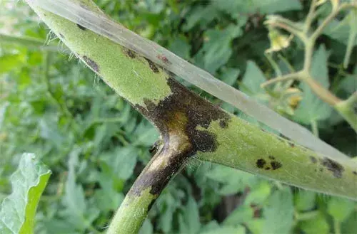 茎秆上的这个症状和番茄细菌性斑点病、早疫病、茎枯病侵染引起的表现症状很相似。
