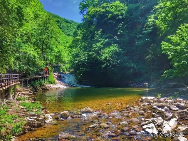 美丽的通天河景区是国家4A级景区,景区内最高海拔2738.7米,最低海拔1580米,森林覆盖率达98.6%,拥有广阔的自然森林植被景观,是宝鸡游的必去景点之一。