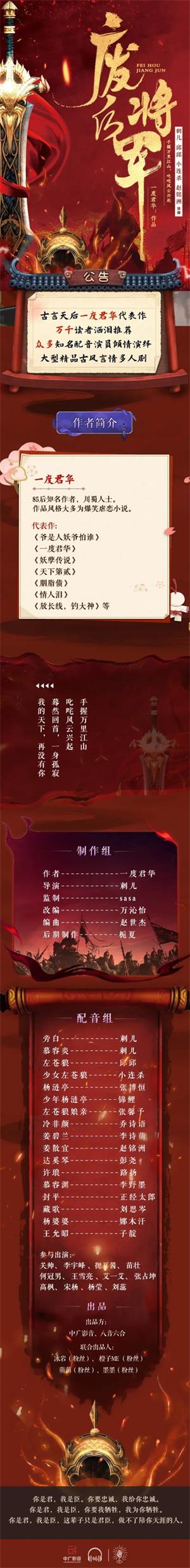 没错,今天就要给大家推荐一部虐心精品古言广播剧《废后将军》。