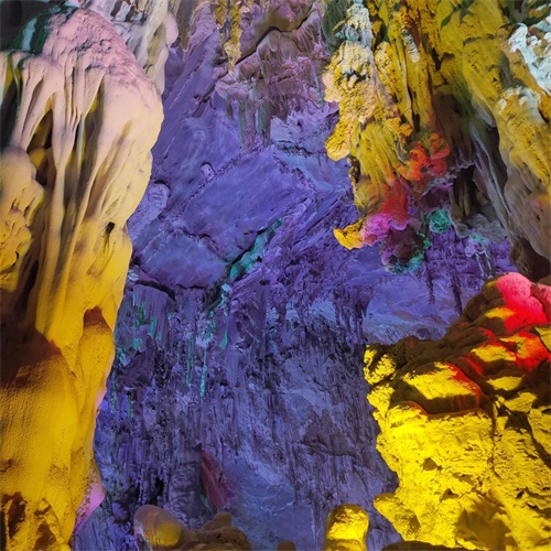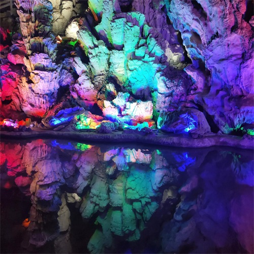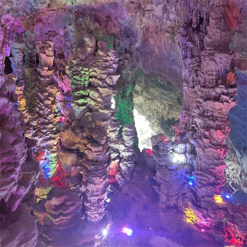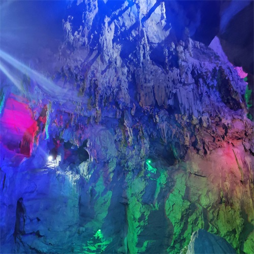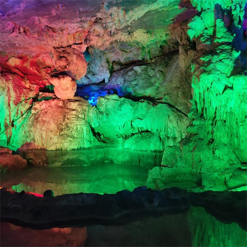 溶洞内水声叮咚作响,绚丽多彩的灯光让人目不暇接,被大自然的鬼斧神工彻底震撼到了!